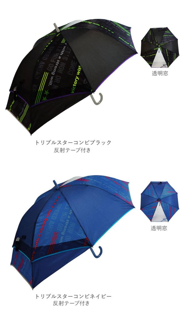 - トリプルスターコンビブラックを購入しました。 画像通りでカッコイイです!息子も喜んでくれました。 紫が好きで探してましたが、男の子が使うような紫色の傘が無く… この傘は縁が紫で全体的な色合いもカッコ良かったので購入しました。 対応が早くすぐに届き、汚れや破損はありませんでした。