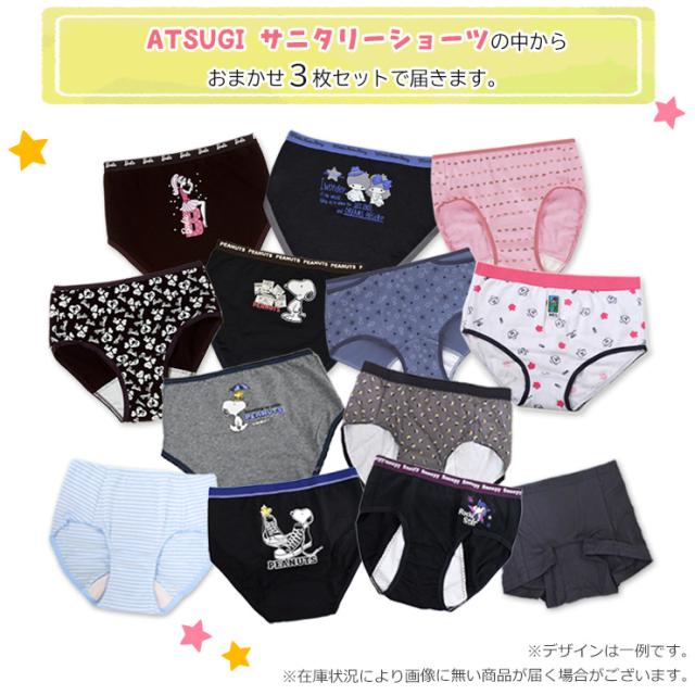 キッズ サニタリーショーツ ATSUGI おまかせ アソート 3枚組 送料無料 アツギ セット キャラクター atsugi まとめ買い ジュニア 生理 (03783)