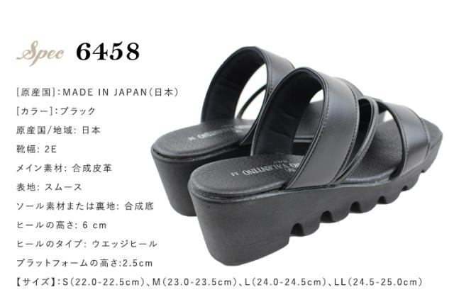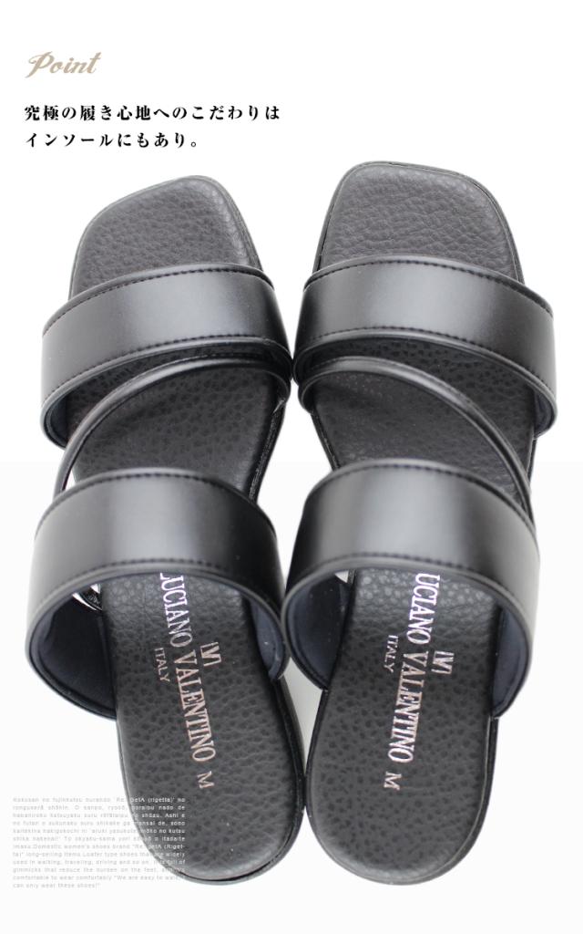 送料無料 日本製 LUCIANO VALENTINO ITALY ルチアーノ バレンチノコンフォートサンダル レディース 靴 ミュール 美脚 歩きやすい オフィス ストラップ ブラック 黒 6458