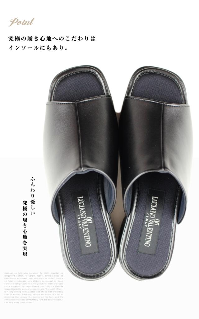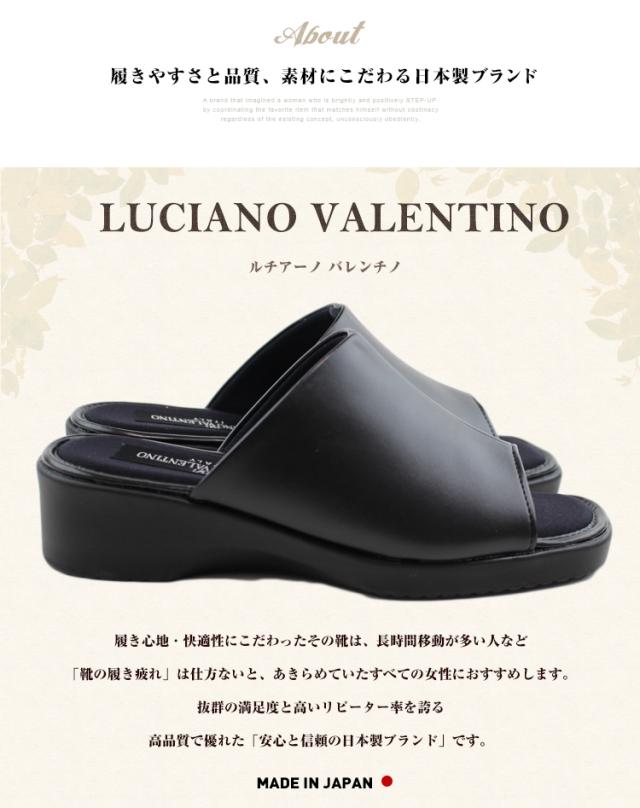 【送料無料】日本製 接触冷感 LUCIANO VALENTINO ITALY ルチアーノ バレンチノ コンフォートサンダル レディース かわいい オフィスサンダル 疲れない 美脚 ウェッジソール サンダル 黒 ローヒール ミュール レディース ヒール 人気 75600
