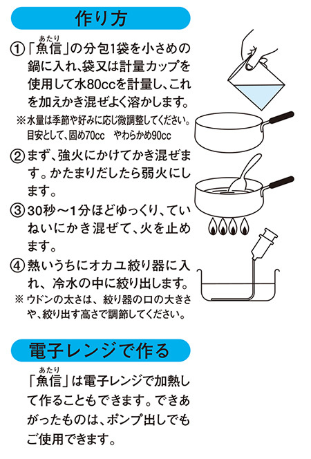 鍋で炊いても、電子レンジで加熱しても作れる、タピオカウドンの素。ネバリが強く、ハリ持ちが抜群で、明確なアタリを導き出すウドンに仕上がります。経時変化が少なくダレにくいため、前日に作っても、釣行日の最後まで使えます。