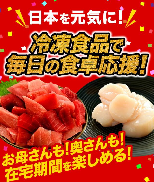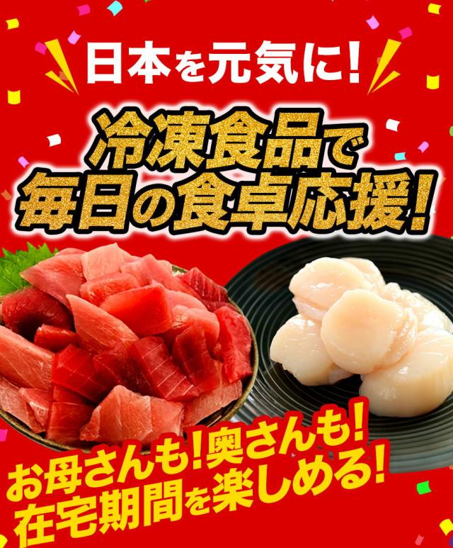 【商品名】在宅応援 超赤字福袋【内容量】ほたて貝柱 500g 冷凍むき牡蠣 500g まぐろ切り落とし 500g青森大間本鮪使用ネギトロ 200g×2 特大うなぎ蒲焼 1本シューストリングポテト 1kg てっさ(とらふぐ)1皿