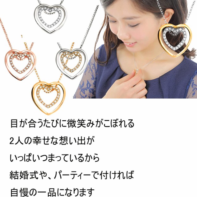 スワロフスキー レディースネックレス ネックレス人気 豪華プレゼントギフト ダブルハート ネックレス プラチナ ゴールド ピンクゴールド アクセサリー オープンハートネックレス ペアネックレス