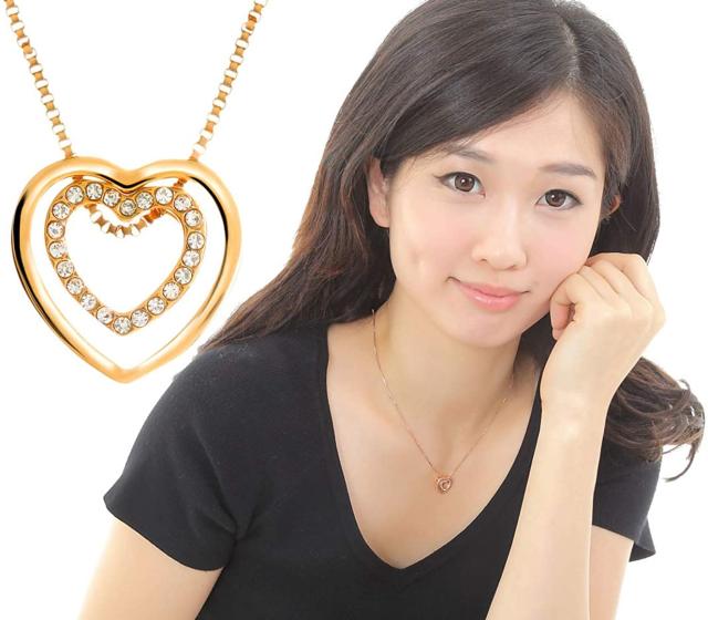 サイズは外のハート縦14mm×幅12mm 中のハート 縦9?×横9? 宝石1粒1mm チェーン ベネチアチェーン 40cm+アジャスター付き5cm カジュアルからフォーマルまで幅広く活用でき、 大きさが1.2cmですので、 大きすぎず10代から何歳までも年齢問わず 美しく首元を飾ってくれます。