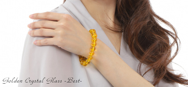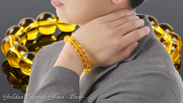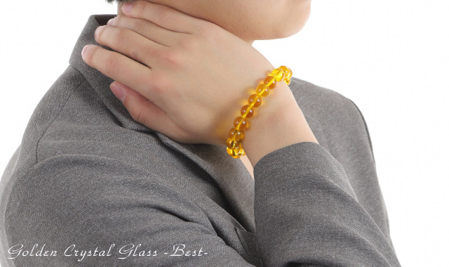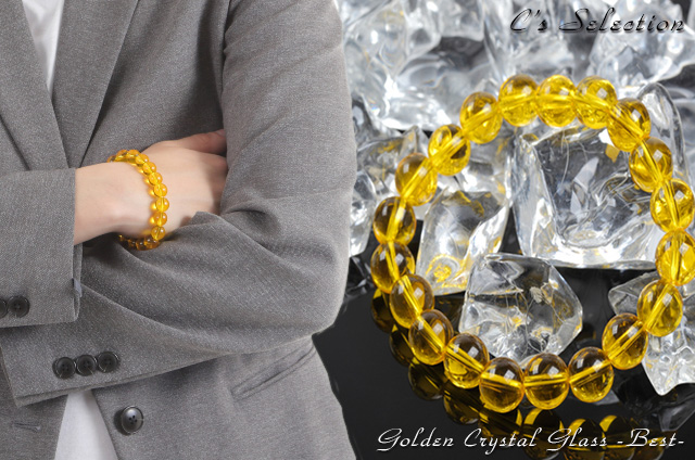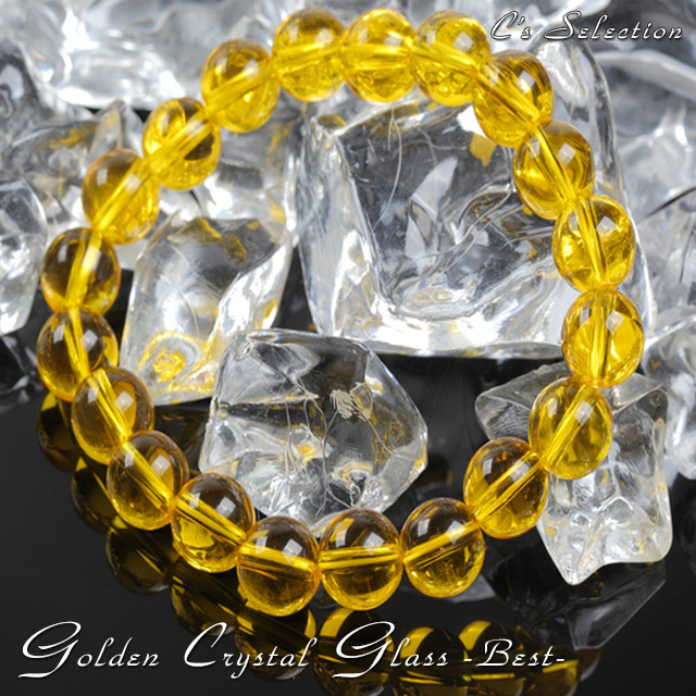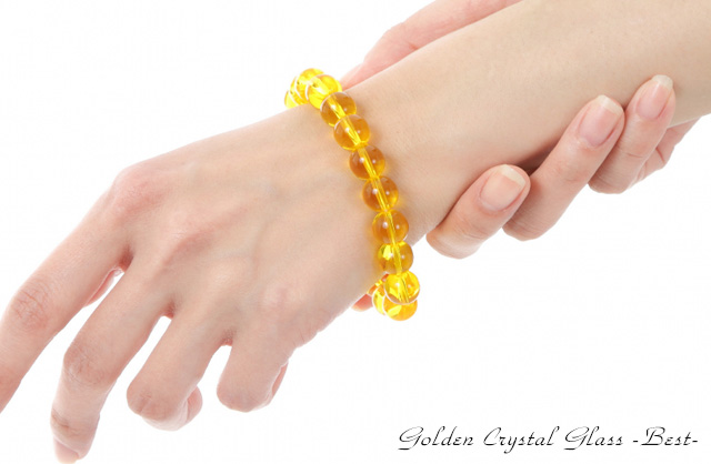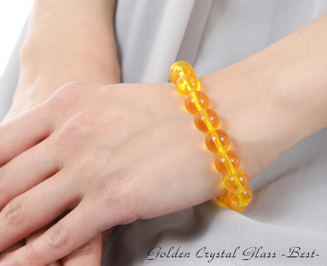 【送料無料】大粒10mm★幸せのゴールデン・クリスタルグラスブレスBest★深く透明感溢れる金色が手元を美しく飾りながら幸せを呼び込む! ブレスレット ゴールド 太陽 エネルギー 富 チャンス 強い 風水 アップ お金 人生 疲れ 幸福 自然 願い 成功 パワー 男性 女性 アクセ