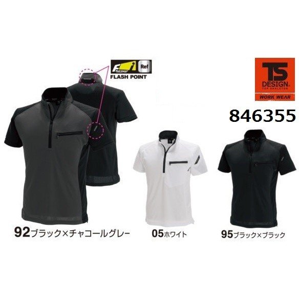 藤和 846355 ワークニットショートシャツ SS〜6L TS DESIGN 半袖ポロシャツ ティーエスデザイン ハーフジップ 男女兼用 (ネーム刺しゅうできます)