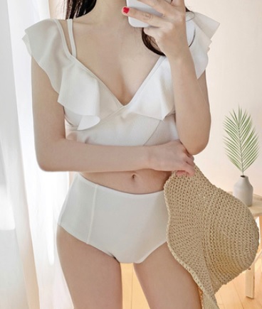 水着 ビスチェビキニ フリル レディース 夏 無地 白 ピンク リゾート 海 ビーチ 温泉 プール 海水浴 バカンス ジム スポーツ 大人可愛い セクシー キュート 10代 20代 30代