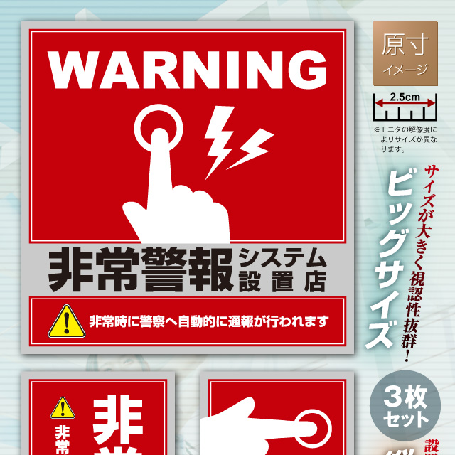店舗内出入口付近や陳列棚等の目立つ所に貼るだけで防犯効果アップ!