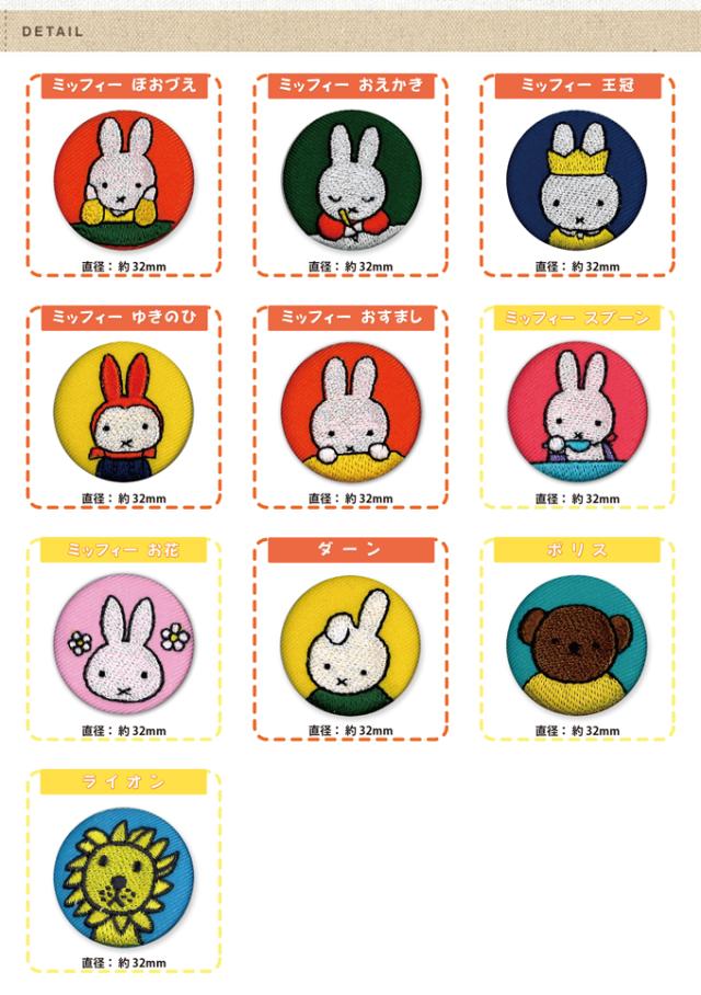 キャラクターワッペン 刺繍ワッペン 男の子 女の子 入園 入学 幼稚園 保育園 小学校 お祝い ギフト バッチ バッジ ピンバッジ ディック・ブルーナ ミッフィー ボリス ライオン