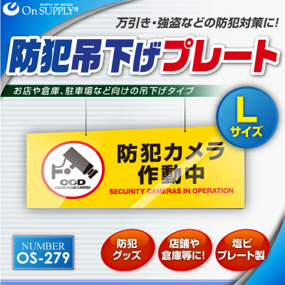 防犯吊下げプレート セキュリティプレート 防犯カメラ作動中 OS-279