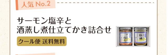 サーモン塩辛200g、酒蒸し煮仕立て牡蠣220g(固形量100g)