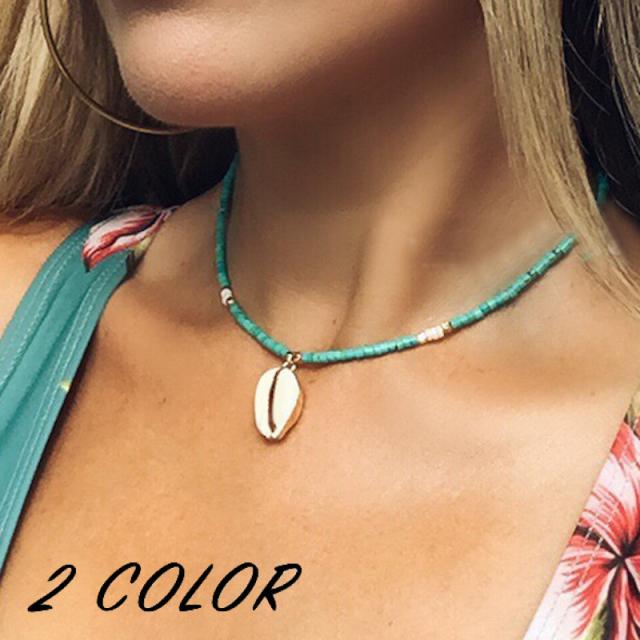 ネックレス アクセサリー レディース 女性用 貝殻 シェル ビーズ ボヘミアン ハワイアン かわいい おしゃれ シンプル 海 夏