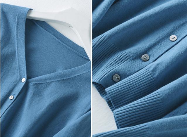 胸元は適度な開きのVネックで顔周りを女性らしくスッキリ見せてくれます。