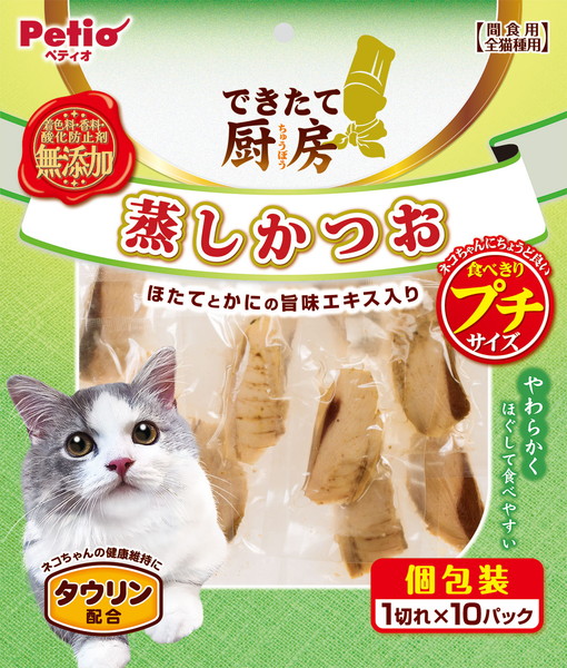 ペティオ できたて厨房 キャット 蒸しかつお プチ 1切れ×10パック 猫用おやつ キャットスナック カツオ レトルト 猫用おやつ 6ヶ月〜 ネコ タウリン Petio