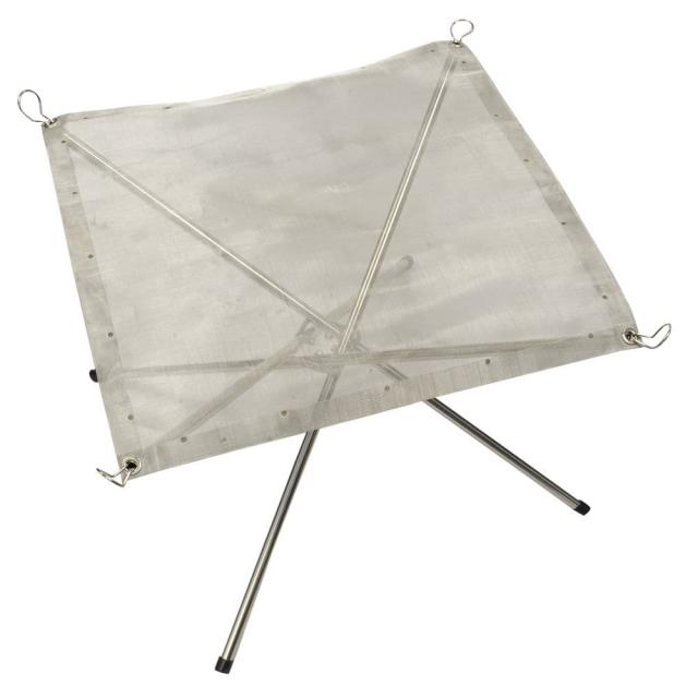 キャンプファイヤーだけでなく調理でも使用可能。網目が小さいため灰が地面に落ちるのを抑えられます。
