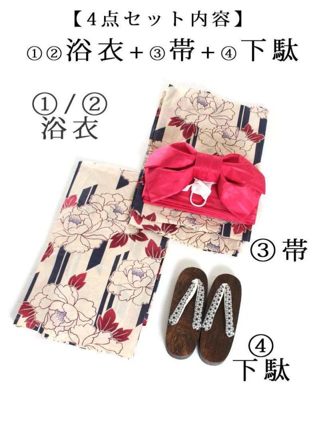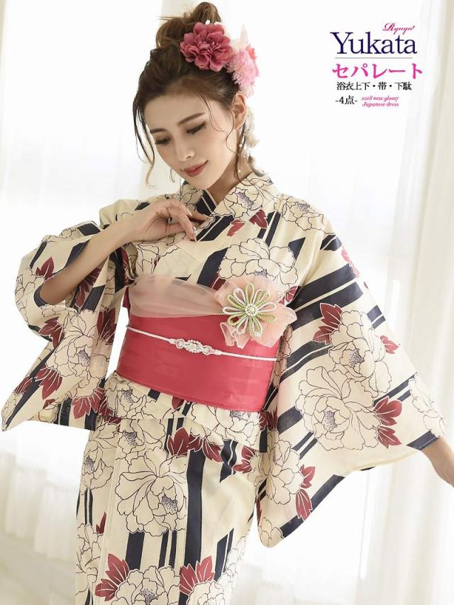 ☆浴衣上下・作り帯・下駄のお得な4点セットのセパレート浴衣は一人で簡単に着れちゃう二部式浴衣セット♪