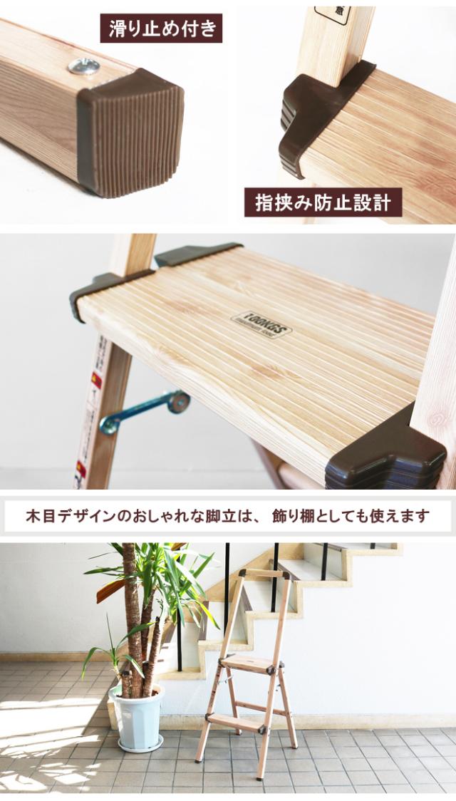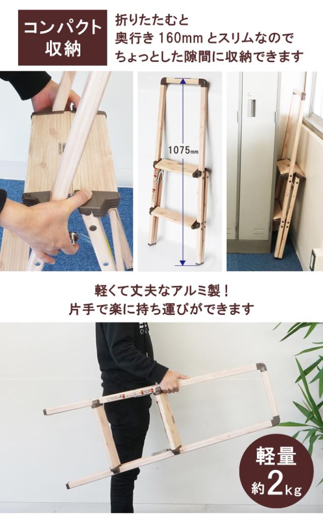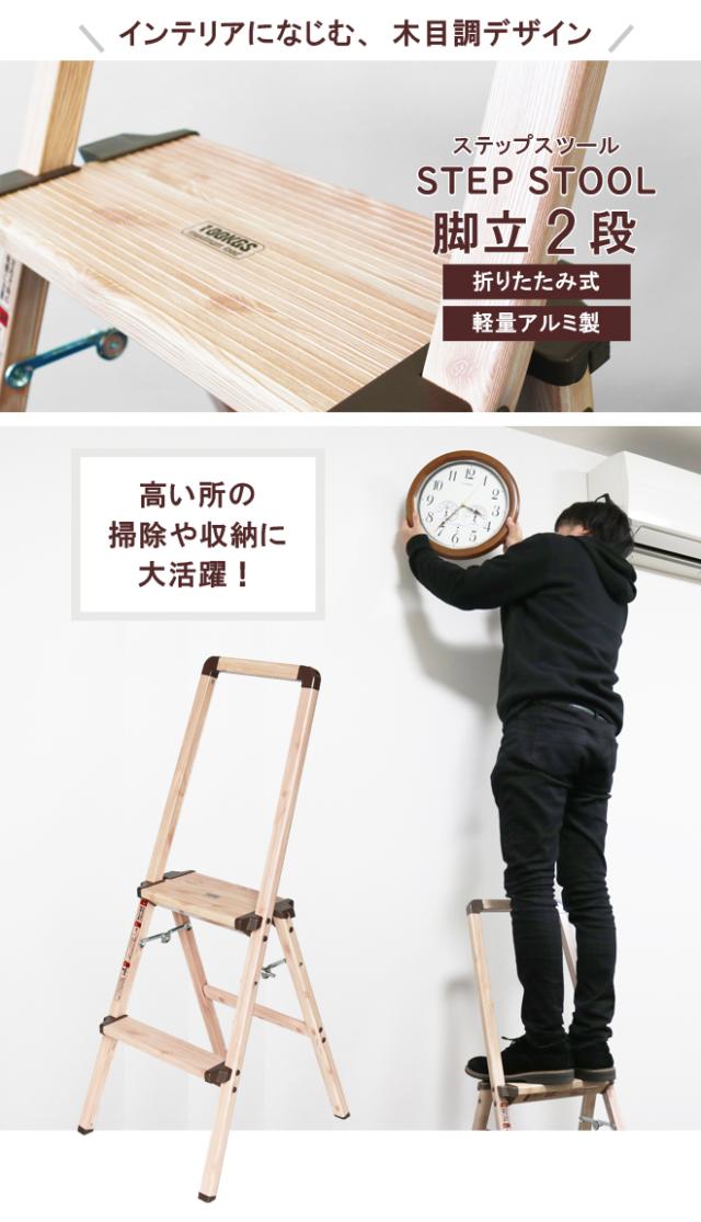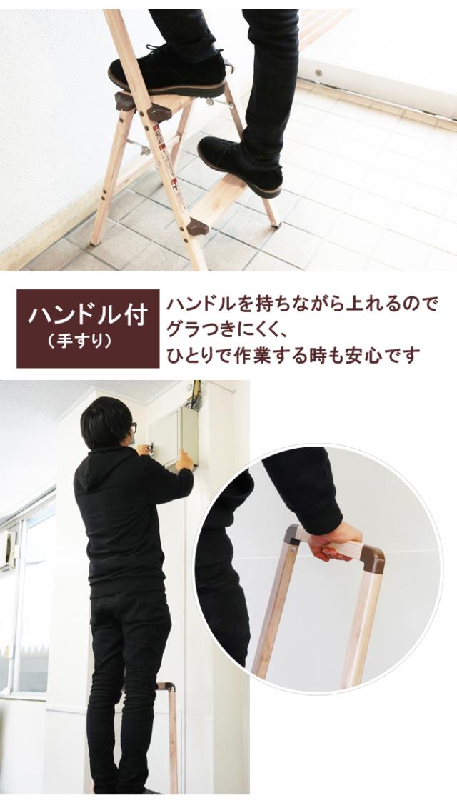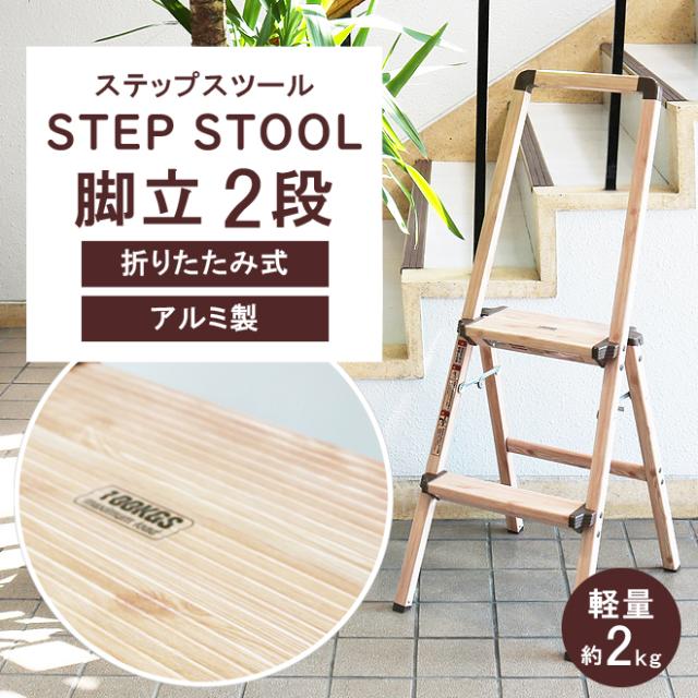 脚立 2段 軽量 アルミ 折りたたみ 木目調 はしご ハンドル付き 踏み台 ステップスツール ステップラダー 耐荷重100kg KIKAIYA