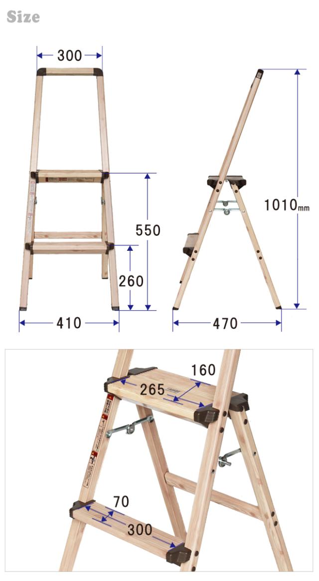 木目デザインのおしゃれな脚立 ●片手で楽に持ち運びができる、軽くて丈夫な2段のアルミ製脚立です ●室内やガレージなど、高い所の掃除や収納に活躍します ●ハンドル(手すり)付きなので、上り下りも安心です ●ステップ部には指挟み防止、脚部の裏には滑り止め加工が施されています ●コンパクトに折りたためるので、ちょっとした隙間に収納できます ●木目デザインのおしゃれな脚立は飾り棚としても使えます ●商品は完成品なので、すぐにご使用いただけます ※脚部を完全に開き、止め金具をしっかり固定してご使用下さい ※不安定な場所でのご使用は危険ですのでおやめ下さい 品番:KT-2M |