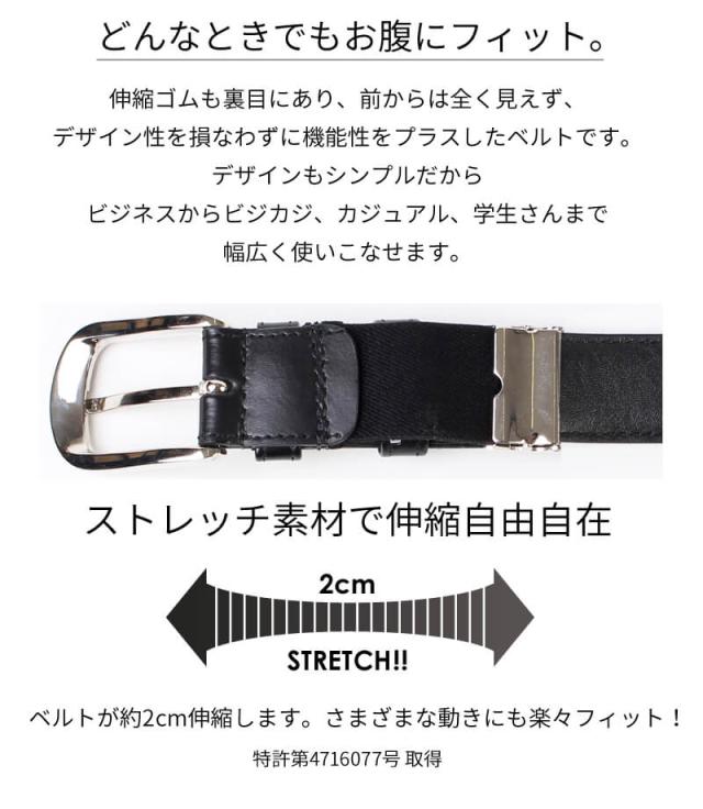 ベルト メンズ 伸びるレザーベルト 本革 牛革ベルト ピン式 穴あり ベルトメール便(箱)発送 メール便で送料無料 oth-ux-be-1596 ビジネス カジュアル ゴルフ 伸びる ゴム 学生 父の日
