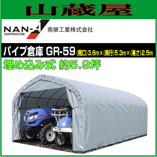 南栄工業 パイプ倉庫 GR-59 埋め込み式 約5.9坪 幅:3600 × 奥行:5300 × 高さ:2500mm 倉庫 物置 資材置き場
