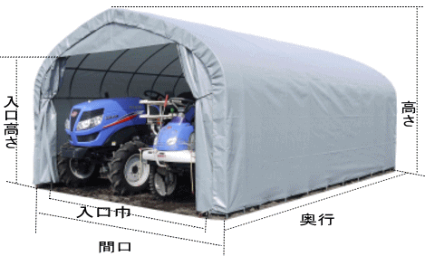 | 間口 | 入口巾 | 奥行 | 高さ | 入口高さ | パイプ径 |