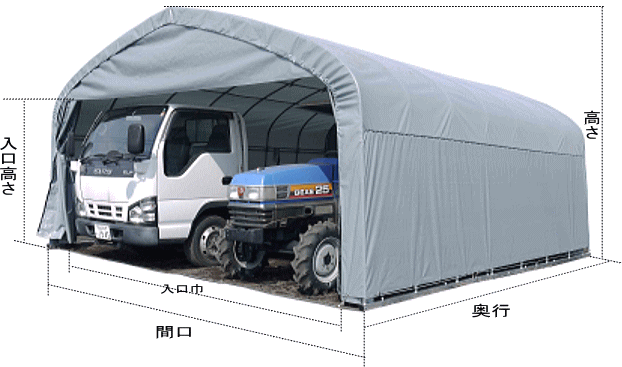| 間口 | 入口巾 | 奥行 | 高さ | 入口高さ | パイプ径 |