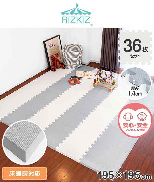 ジョイントマット プレイマット ベビーマット 赤ちゃんマット セーフティ セーフティーグッズ 安全グッズ 子供部屋 リビング お昼寝 キッズスペース 遊びスペース ベビー 子供 子ども こども キッズ ベビー 赤ちゃん 幼児 乳児 育児 男の子 女の子 孫 まご 0才 1才 2才 3才 0歳 1歳 2歳 3歳 保育園 幼稚園 里帰り 帰省 実家 ハイハイ つかまり立ち 出産祝い 出産準備 贈り物 プレゼント お祝い ギフト 人気 オススメ おすすめ ランキング 組み立て 組み立て式 クッション マットレス 防音対策 超低ホルムアルデヒド商品 抗菌性試験実施 お手入れ簡単 ベージュ ホワイト グレー RiZKiZ リズキズ 正規品 オリジナル インテリア・寝具・収納 カーペット・マット・畳 マット 子供部屋用インテリア・寝具・収納 カーペット・ラグ