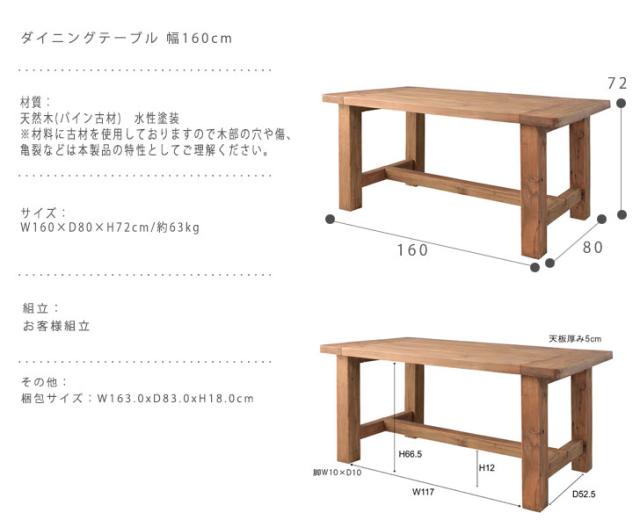 WOODMAN ウッドマン ダイニングテーブル 幅160cm (机 角型 ナチュラル 木製 天然木 パイン材 4人掛け ヴィンテージ カントリー レトロ 店舗 大型 SOHO おしゃれ おすすめ)