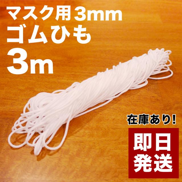 在庫あり 即納 日本製 肌に優しい マスク用 ゴム紐 3mm 3m ソフトタイプ 手作りマスク ウイルス対策 日本国内発送