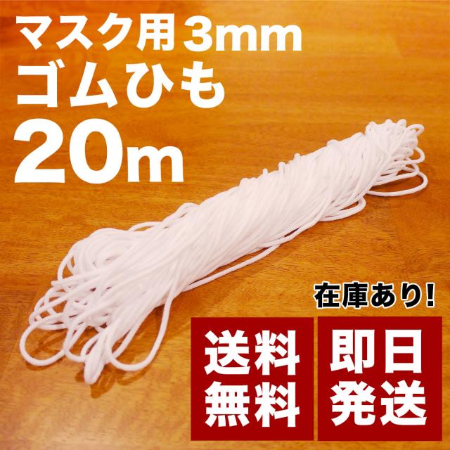 在庫あり 即納 日本製 肌に優しい マスク用 ゴム紐 3mm 20m ソフトタイプ 手作りマスク ウイルス対策 日本国内発送