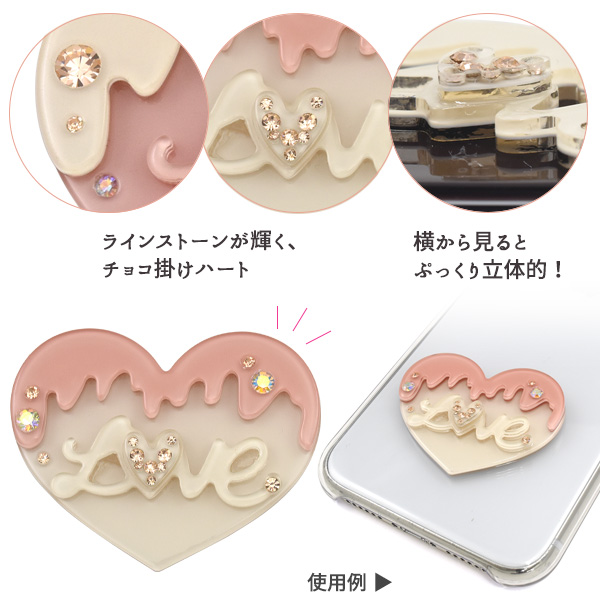 きらきら輝くラインストーンと、とろ〜り掛かったチョコレートが可愛らしいハート型です。