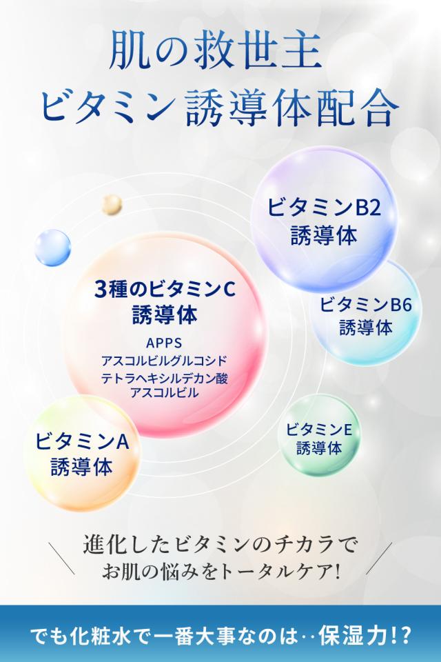 ◆ビタミンA誘導体(レチノール)、ビタミンB2誘導体、ビタミンB6誘導体、ビタミンC誘導体(APPS)、ビタミンE誘導体を贅沢に配合。 ビタミンのチカラでお肌に潤いとハリを与えます。ニキビや肌荒れなど肌トラブルにもとてもオススメです。