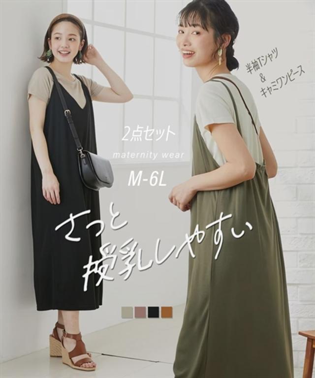 【産前・産後 授乳服】マタニティ2点セット(半袖Tシャツ+キャミワンピース)