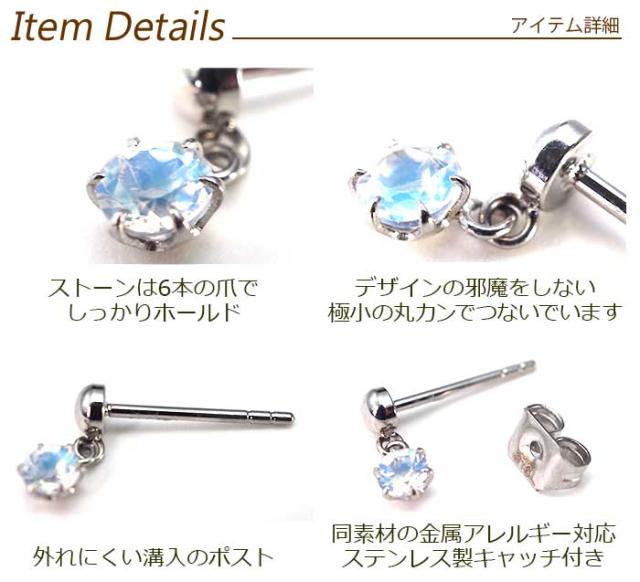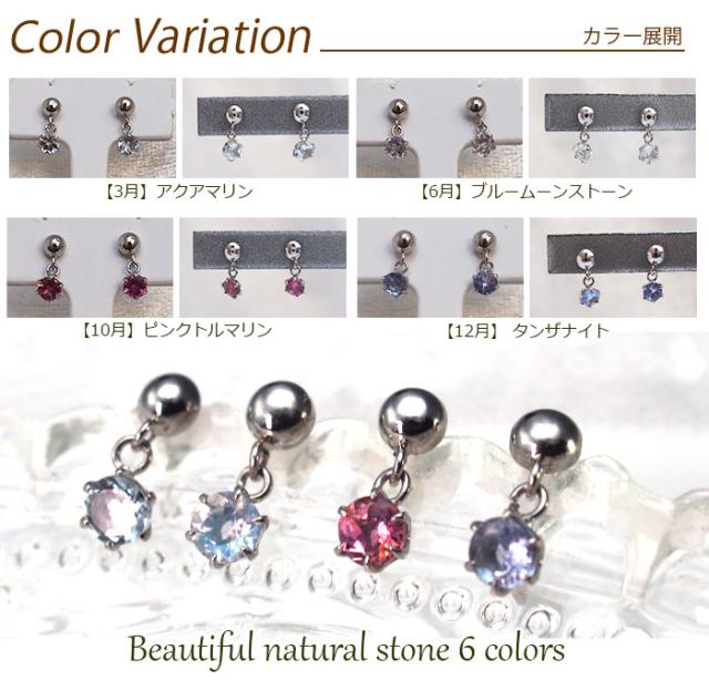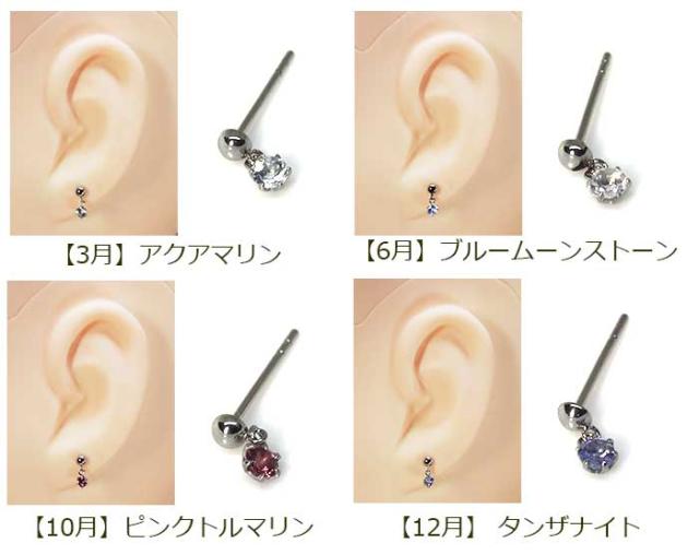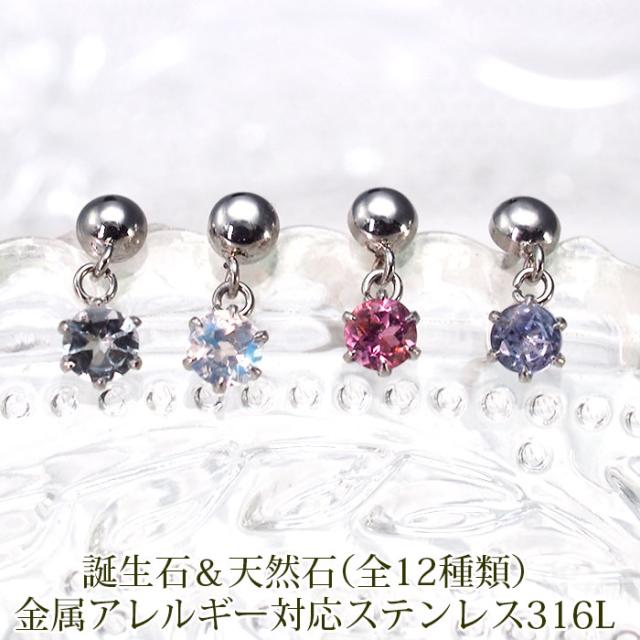 | 誕生石 ぶら下がり 3mm 6本立て爪 半円 ステンレスピアス 金属アレルギー対応 |
