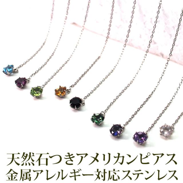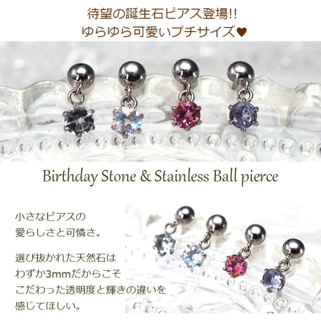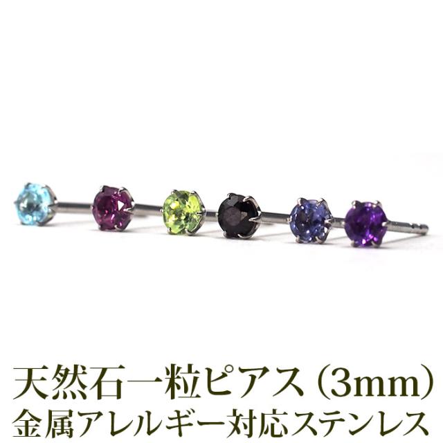 天然石(3mm)&半円 ボール付 ピアス 金属アレルギー対応 ステンレス サージカル 医療用ステンレス 誕生石 パワーストーン レディース メンズ スタッド キャッチ