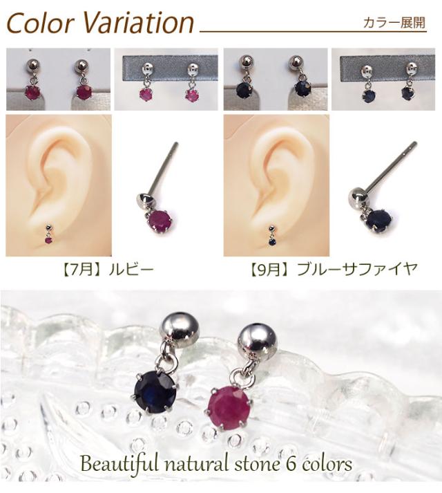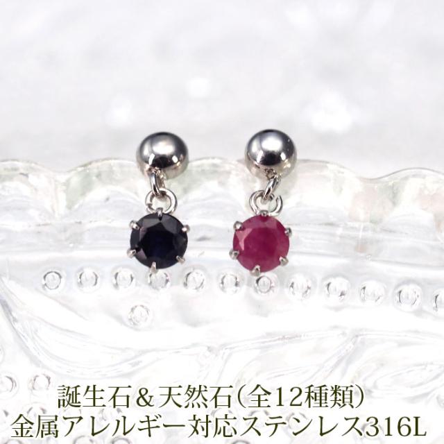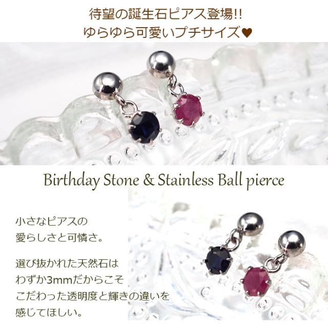 天然石(3mm)&半円 ボール付 ピアス 金属アレルギー対応 ステンレス サージカル 医療用ステンレス 誕生石 パワーストーン レディース メンズ スタッド キャッチ