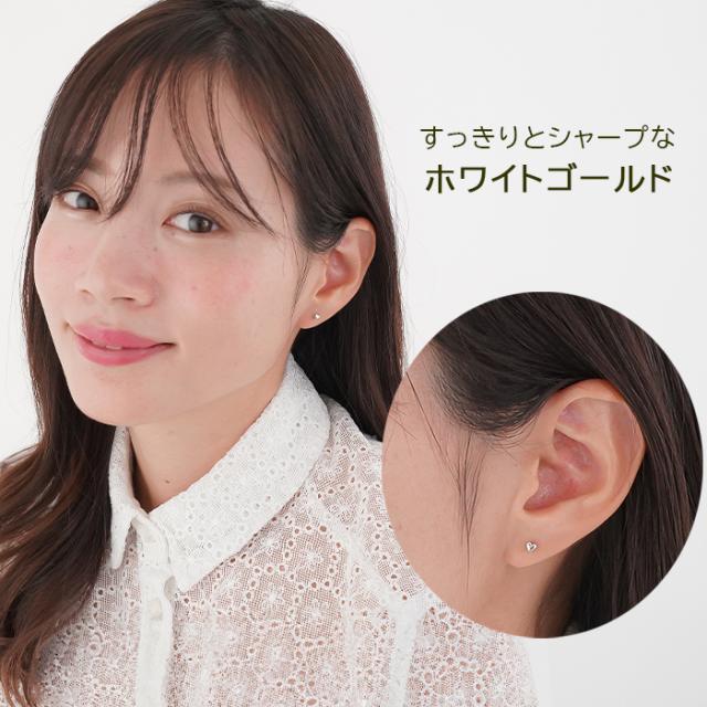 シンプルで上品なデザインがどんなシーンにもフィットするオール18金の極小ハートピアス。