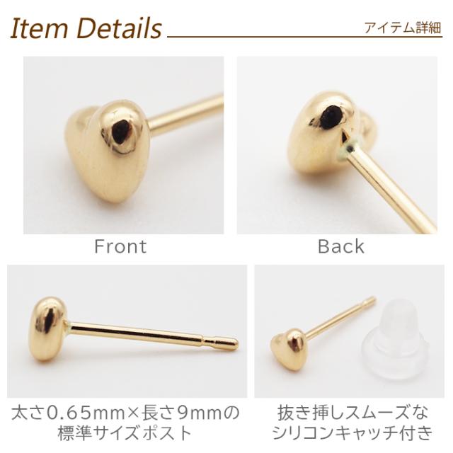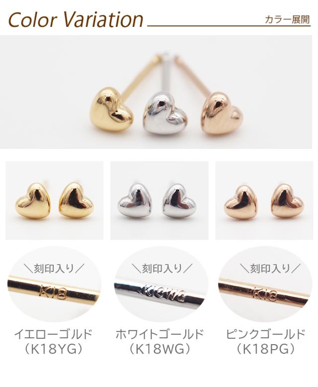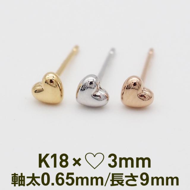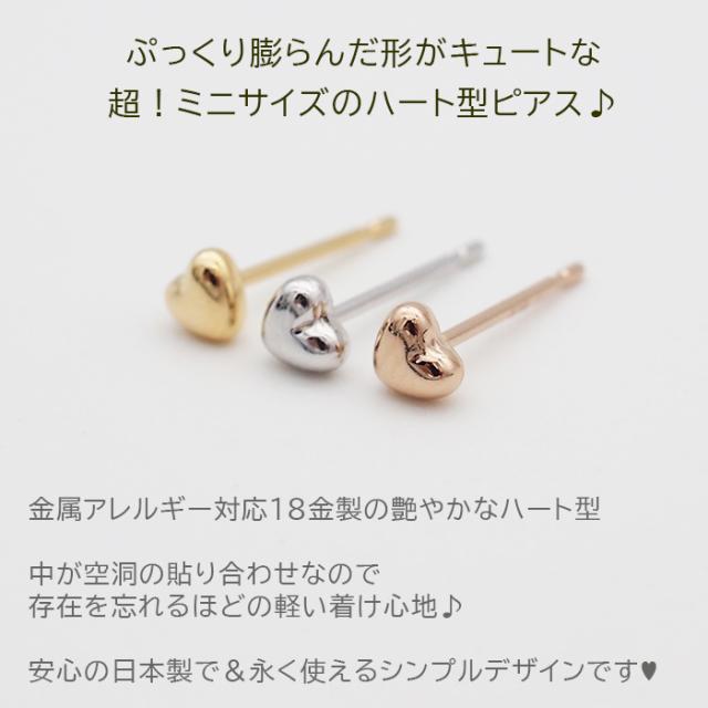 ピアス レディース ゴールド 18金 ハート 3mm 金属アレルギー 18K かわいい シンプル 地金 片耳