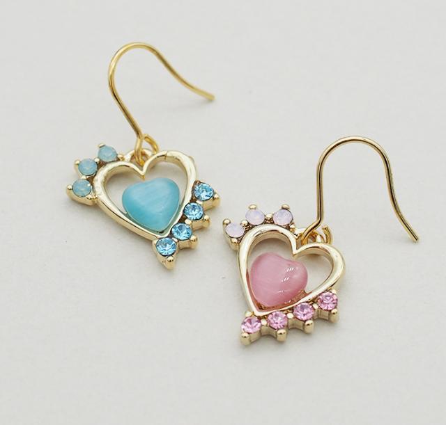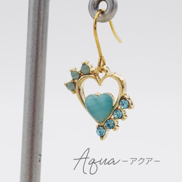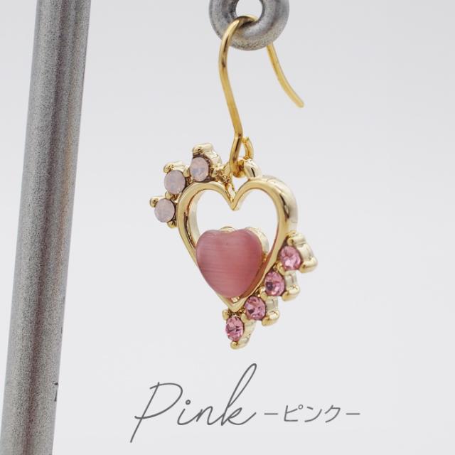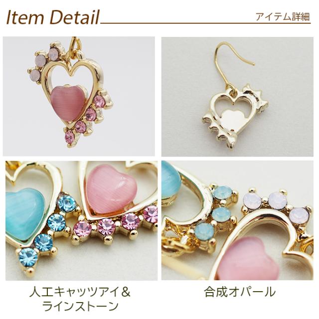 ピアス ハート&キャッツアイ&ラインストーン(全2色) 全品1個ずつバラ売り プレゼント