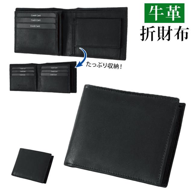財布 メンズ 二つ折り 通販 本革 牛革 水牛革 折財布 二つ折り財布 小銭入れあり おしゃれ シンプル 無地 黒 ブラック ビジネス カード収納 大容量 進学 新生活 プレゼント ギフト