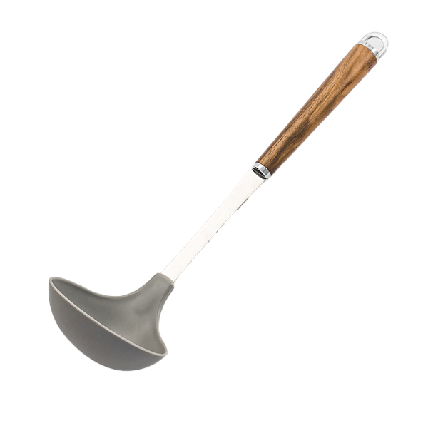 | 材質 | お玉:ポリプロピレン(フッ素入) シャンク:18-8ステンレススチール 口金・フック・尻金:真鍮にクロームメッキ 柄部:天然木にウレタン塗装 |