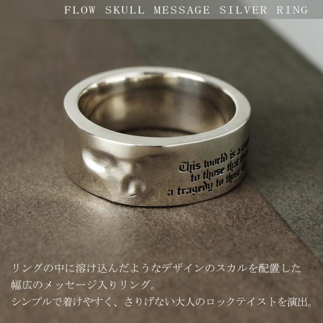 Dr MONROE フロー スカル メッセージ シルバー リング 指輪 13〜23号 メンズリング シンプル 幅広 骸骨 ドクロ 髑髏 ガイコツ メンズ 男性 彼氏 夫
