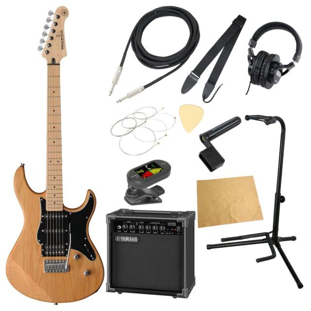 ヤマハ パシフィカのエレキギターにYAMAHA アンプ「YAMAHA GA15II」、ケーブル、チューナー、ストラップ、換え弦、スタンド、ピック、クロス、ヘッドホン、ストリングワインダーをお付けした11点セットです。