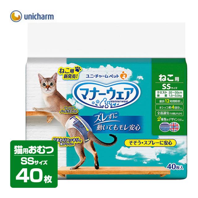猫用 おむつ マナーウェア SSサイズ 40枚 ■ オムツ そそう マーキング 介護 ナプキン 生理 マナー 失敗 散歩 外出 旅行 キャット ねこ