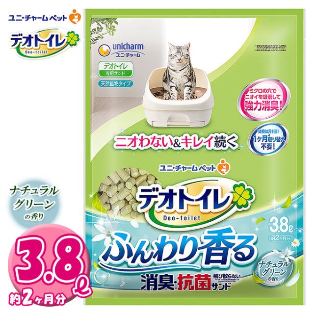 猫砂 天然 鉱物 システムトイレ用 ユニチャーム デオトイレ 消臭・抗菌 サンド グリーン 3.8L ■ キャット トイレ 砂かき 爽やか
