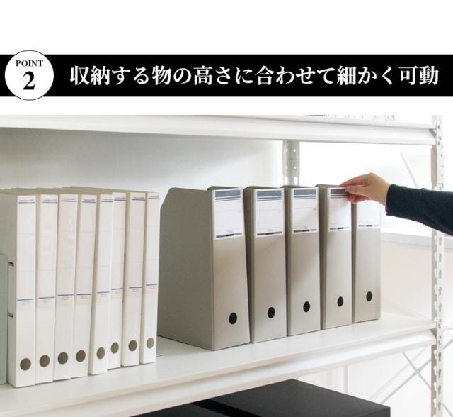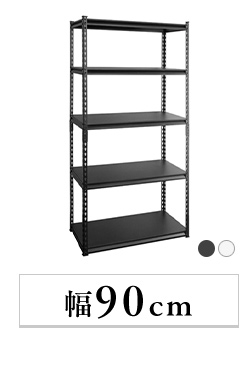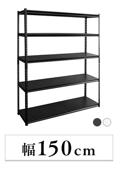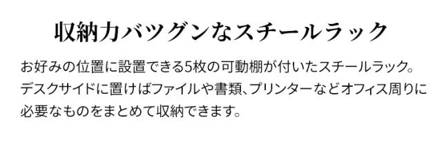 お好みの位置に設置できる5枚の可動棚が付いたスチールラック。