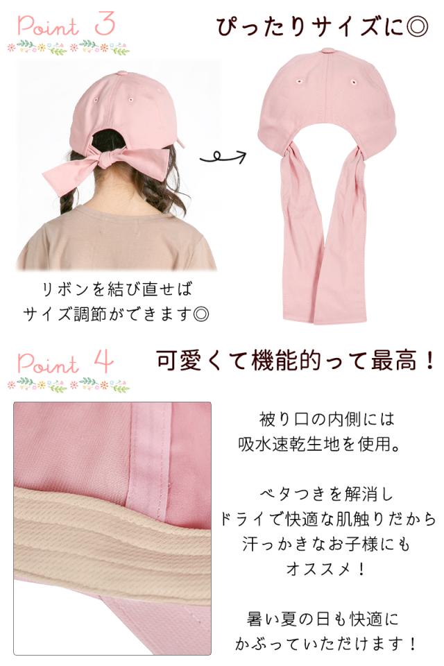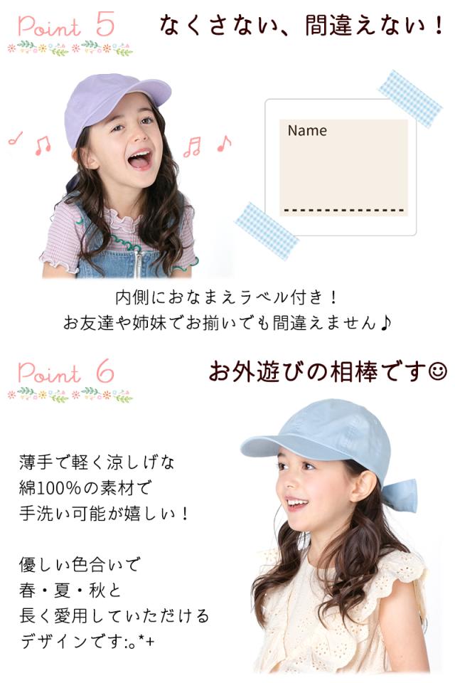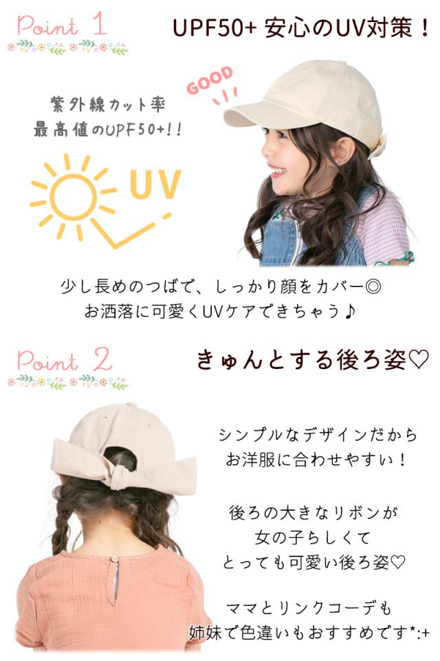 キッズ 帽子 女の子 UV キャップ キャスケット リボン 帽子 日よけ 可愛い UPF50+ 紫外線カット 《レビュー記入でメール便無料》 ナチュラル コットン 綿 おしゃれ 子供服 幼稚園 小学生 中学生 54 56 100 110 120 130 : bianca barca ビアンカ バルカ 送料無料