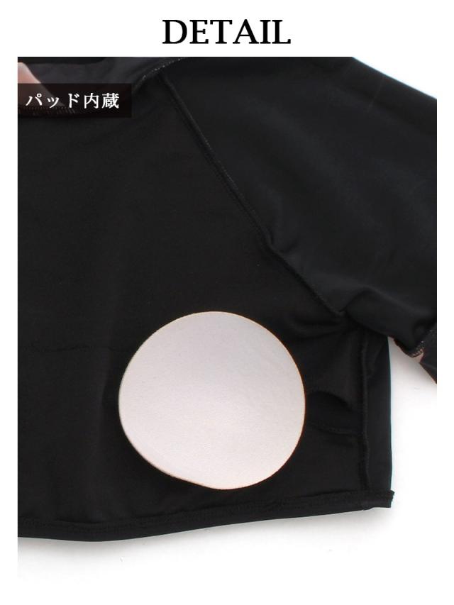☆袖付きデザインで露出を抑えつつ、V字カットとハイレグでセクシーさを演出する大人のキャバ水着。ブラックカラーがクールで洗練された印象に。