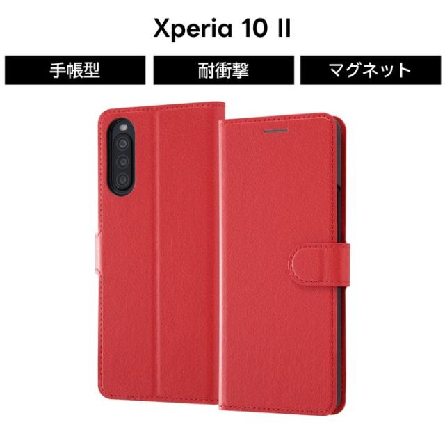 Xperia10 II ケース 手帳型ケース シンプル マグネット スリープ機能対応 レッド エクスペリアテンマークツー カード収納