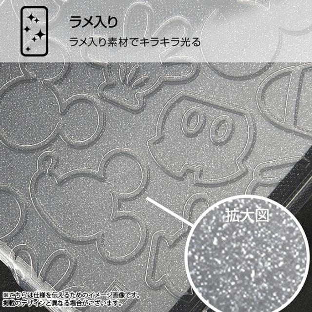 ミッキーマウスのアイコンが散りばめられた可愛いラメ入りケース。